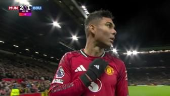 第45+4分钟,曼联左侧角球机会,B费主罚开到后点,卡塞米罗抢点头槌破门!曼联2-1再次领先↓